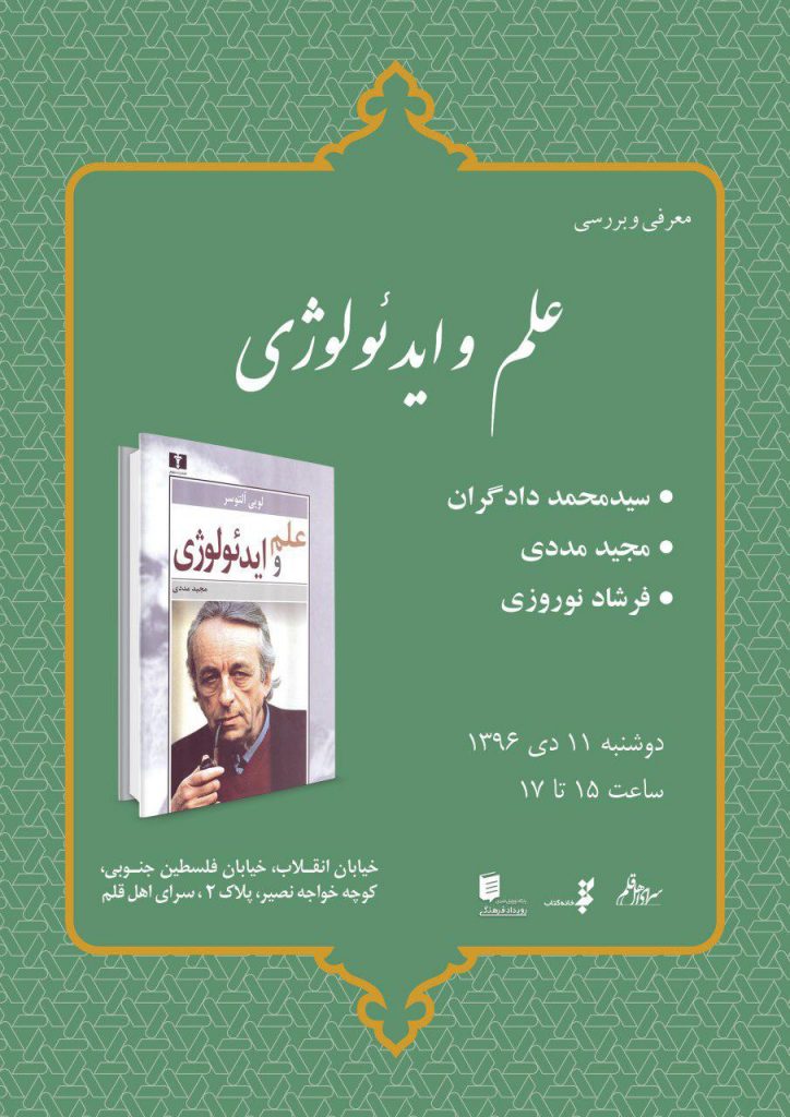 جلسه معرفی و بررسی کتاب «علم و ایدئولوژی» لویی آلتوسر به ترجمه دکتر مجید مددی